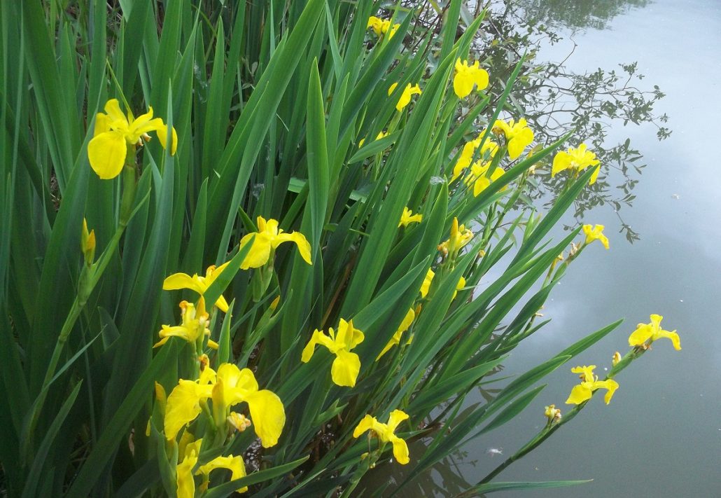 In the open reaches the fluffy meadow sweet is common, and the yellow flag iris often grows with it. There are drifts of reedmace (bulrush) with its characteristic brown pokers, and the rosebay willow herb, which is especially lovely in the late summer. There is water mint, wild angelica, marjoram, various vetches, buttercups, and many more. At the northern end of the canal a change in plant species reflects the change in the underlying rock to limestone. Here you will find harebells, lady’s bedstraw, the cut leaved cranesbill, and other calcium loving plants.